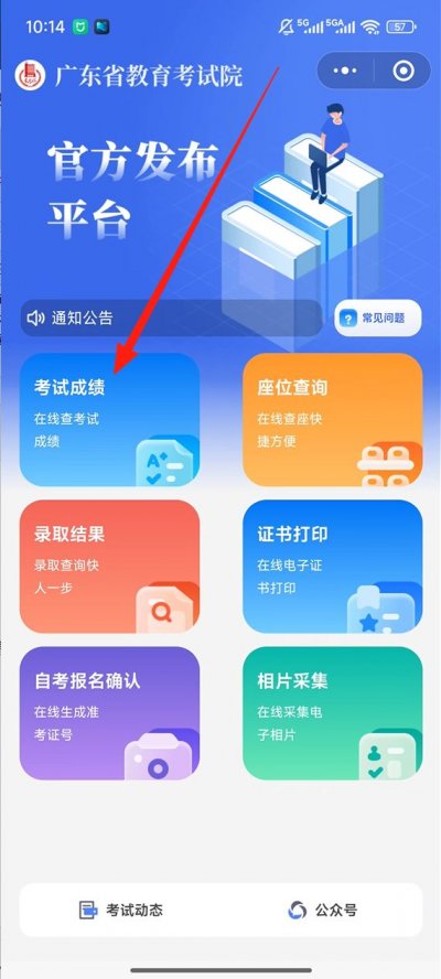 1、进入广东省教育考试院官微小程序,点击成绩查询